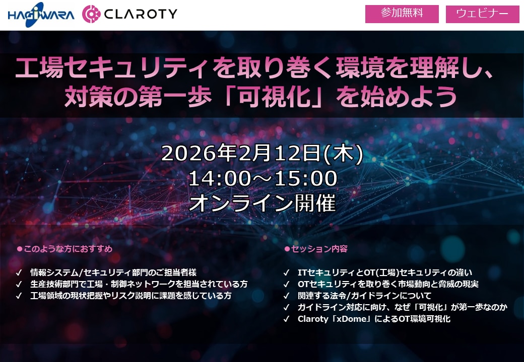 本ウェビナーでは、工場セキュリティの最新動向やガイドラインの考え方を整理したうえで、なぜ“可視化”が対策の第一歩となるのか、どう進めるべきかの解説に加え